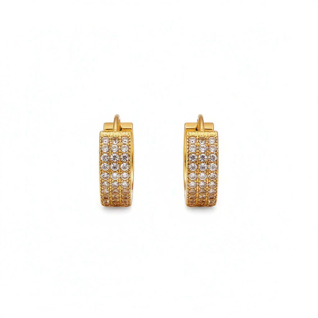 Aros tipo mini hoops con pavé de zirconias que capturan y reflejan la luz con cada movimiento.
